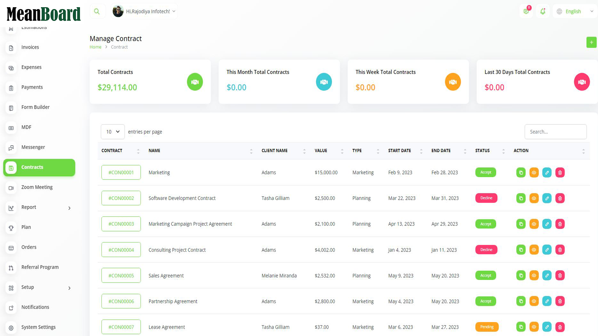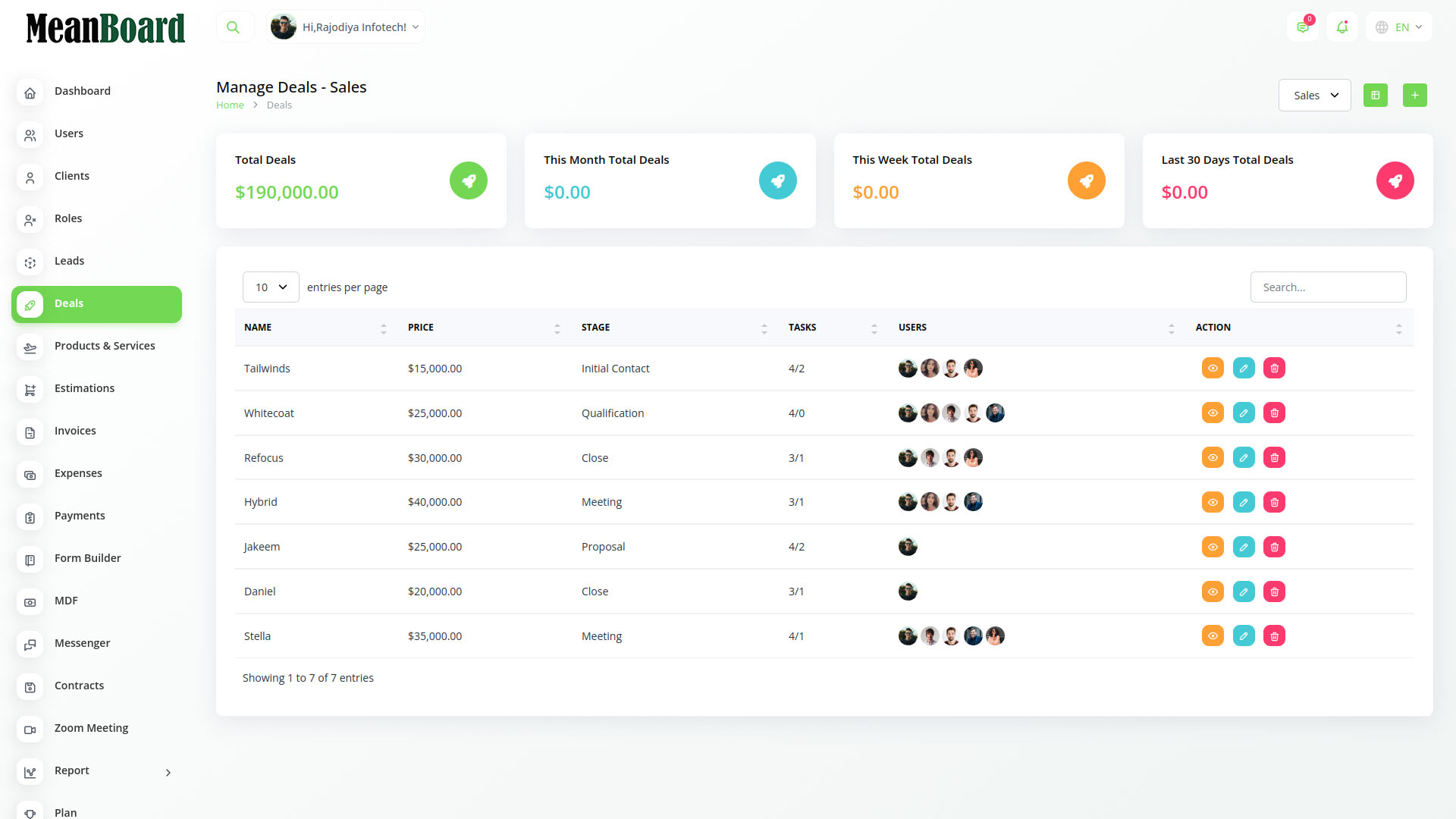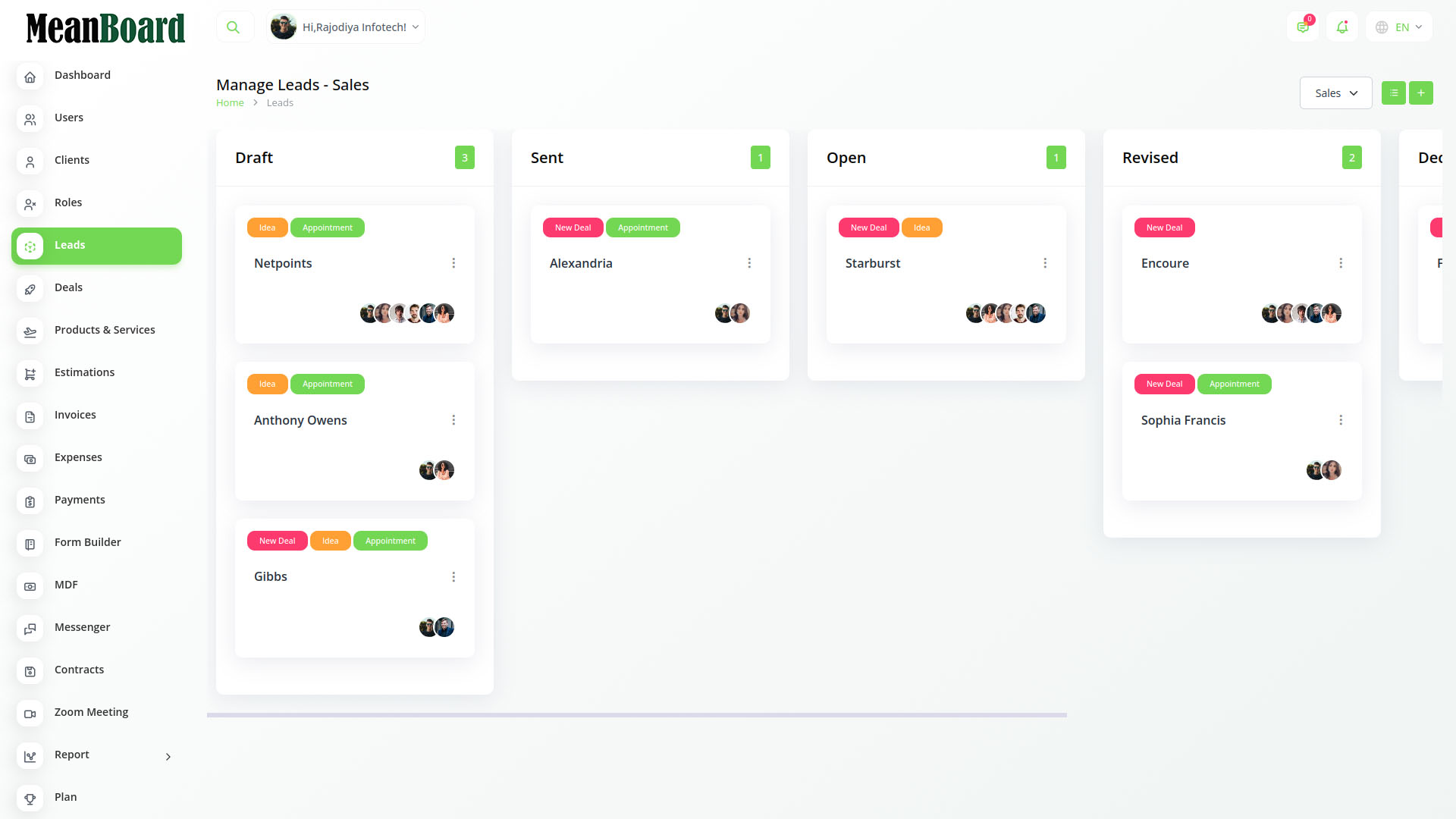 MeanBoard makes it easy to turn leads into clients and manage sales.
